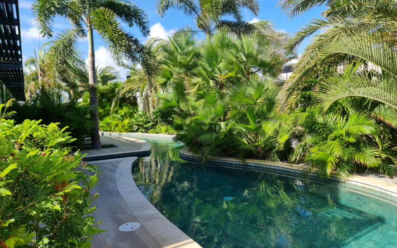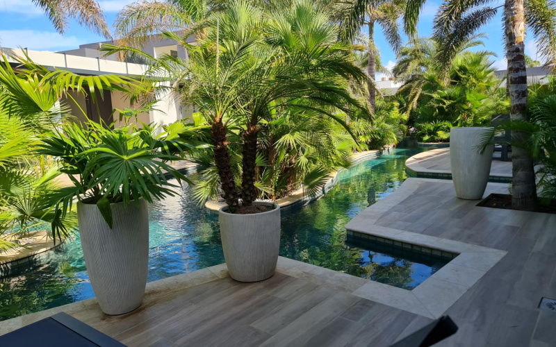 In the heart of the property you will find the pool area. The pool is open from 8 AM till 8 PM; please observe that swimming is at your own risk. For everyone's safety, it is not allowed to bring glass to the pool deck. We also discourage to bring electronic devices near the pool.
