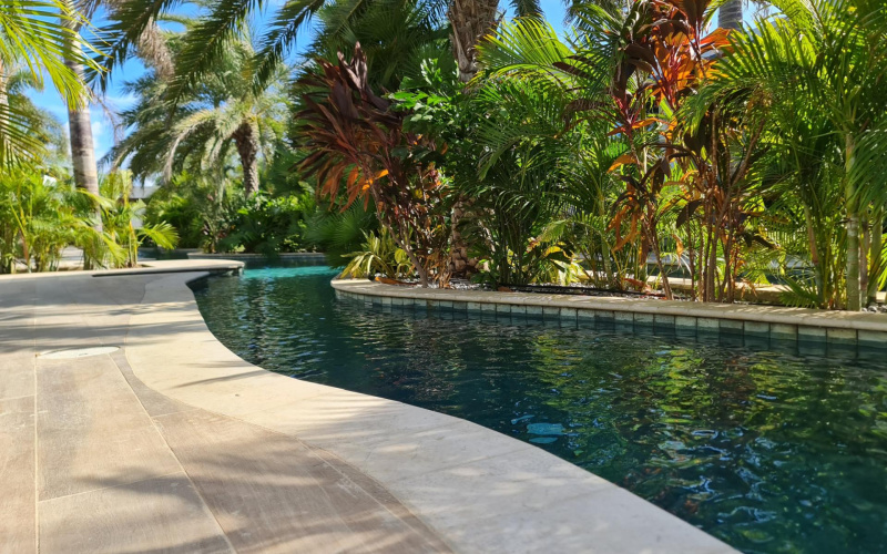 In the heart of the property you will find the pool area. The pool is open from 8 AM till 8 PM; please observe that swimming is at your own risk. For everyone's safety, it is not allowed to bring glass to the pool deck. We also discourage to bring electronic devices near the pool.