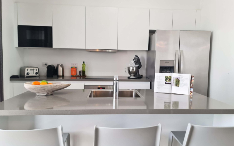 Outside each unit there is a waste container on the side with your house number. Here you can deposit all your waste. Unfortunately, in Aruba no waste is separated yet.
